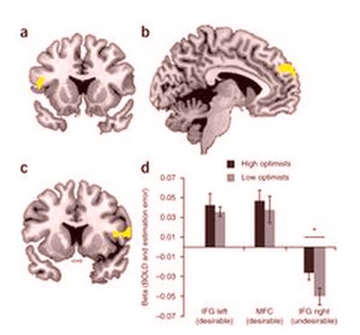 Unsere Untersuchung legt nahe, dass wir (unser Gehirn) uns die Informationen gezielt aussuchen, die wir hören wollen. Umso optimistischer wir sind, desto weniger wahrscheinlich ist es, dass negative Informationen über die Zukunft Einfluss auf uns haben (auch wenn das Negative vollkommen klar ersichtlich ist!). Für die innere geistige Gesundheit kann dies Vorteile mit sich bringen, aber es gibt ganz offenkundige Nachteile. Viele Experten sind der Meinung, dass die Finanzkrise des Jahres 2008 durch Analysten herbeigeführt wurde, welche die Kursentwicklung ihrer Vermögenswerte selbst angesichts eindeutiger gegenteiliger Beweise überschätzten. Ähnliches zeichnet sich derzeit ab, Europa, der Euro steckt in der größten Krise die man sich vorstellen kann, das ist allen bekannt, doch fast niemand will es wirklich wahrhaben, das nützt den Politikern, so können sie frei agieren wie sie wollen.