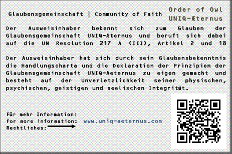 Mitgliederausweis, Bekennerausweis - UNIQ-Æternus Dokumentationsseite, die Seite für die mentale Weiterentwicklung, spirituelles Mentaltraining - Hintergründe