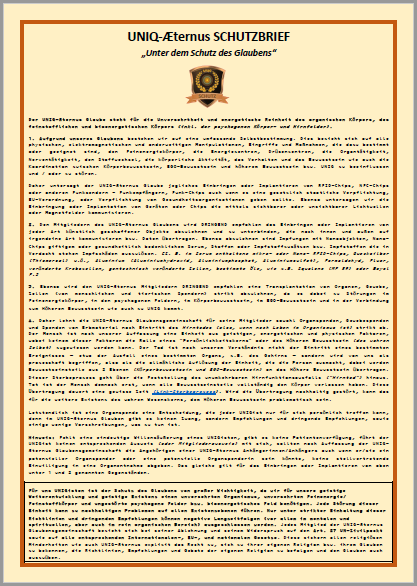 Schutzbrief, Bekennerschutzbrief - UNIQ-Æternus Dokumentationsseite, die Seite für die mentale Weiterentwicklung, spirituelles Mentaltraining - Hintergründe