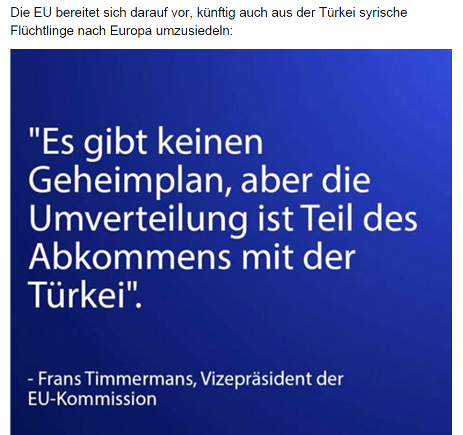 Dazu kommt: Auch eine Umsiedlung von Syrische-Flüchtlinge von der Türkei in die EU wurde klamm heimlich vereinbart.