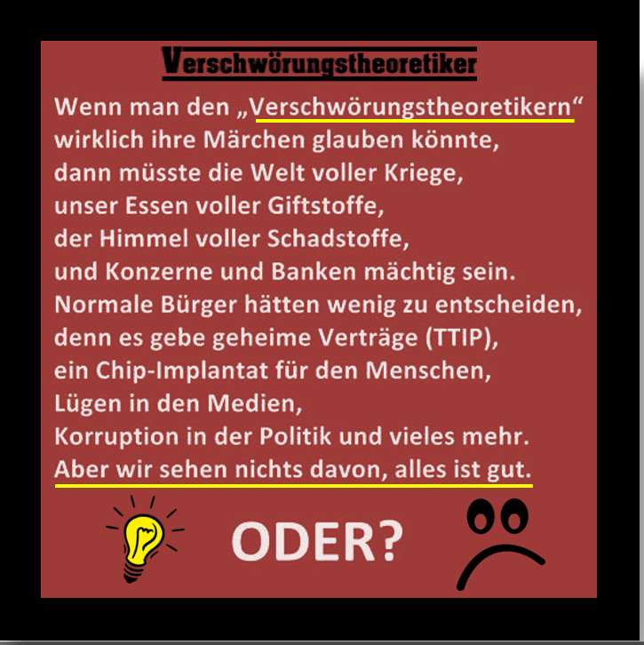 Die Untersuchung zeigte: Menschen, die die offiziellen Berichte favorisierten und den Mainstream-Medien glaubten, waren im Allgemeinen feindseliger und aggressiver als die sog. Verschwörungsteoretiker.