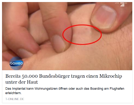 Bargeld ist total out, selbst Bezahlen mit Karte und PIN-Code sind out, kontaktloses Bezahlen am besten mit Chip-Implantat dagegen in. So sehen das immer mehr Banken und Zahlungsdienstleister, die Werbung dafür ist am laufen. Zusammen mit der geplanten (noch bestrittenen) Bargeldabschaffung ist diese Technologie eine gefährliche Kombination, welche den betroffenen Bürger -der einen Chip in sich trägt- in die totale Abhängigkeit zwingen kann!